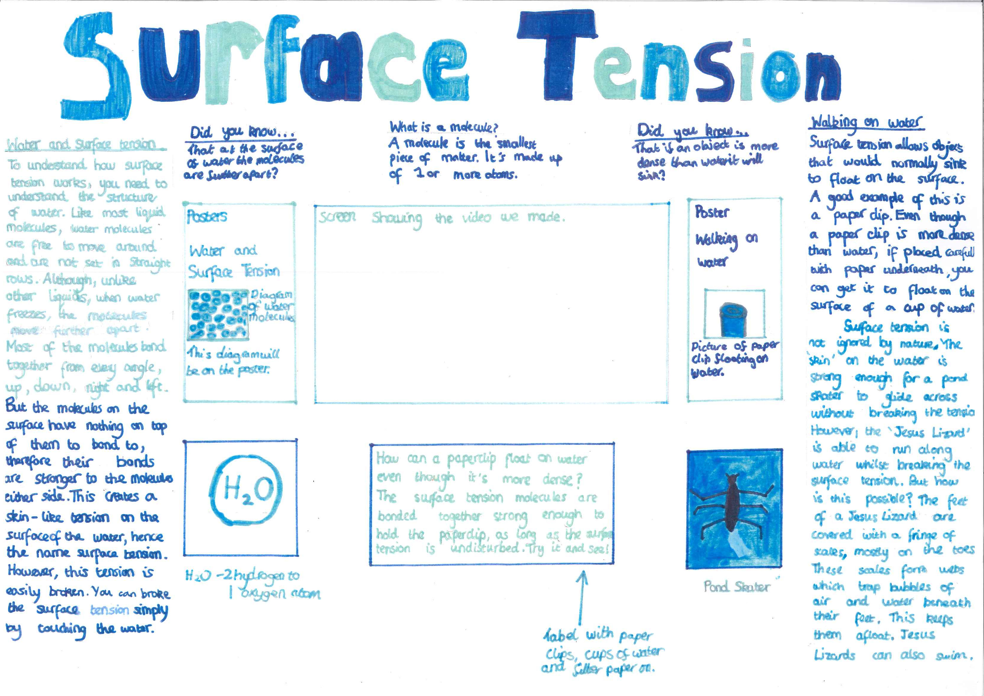 Six schools entered the competition, with a total of 15 teams. The runners up were teams from Impington Village College and Ely College, both with entries looking at surface tension.
