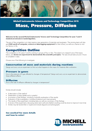 The competition was judged by Dr Stephanie Bell from the National Physical Laboratory; Dr Peter Wothers from Cambridge University; Dr Chris Smith from the Naked Scientists; John Elworthy, Editor of the Ely Standard and Mike Bannister, CEO of Michell Instruments.