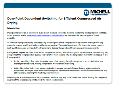Drying compressed air is essential to avoid a host of issues caused by moisture condensing inside pipework and tools. Our latest article explores the most common options for drying – and how measuring the dew point helps to increase efficiency and reduce energy use.